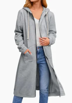 Autumn And Winter Women’s Fashion Chic Solid Color Hooded Casual Coat Long Hoodies