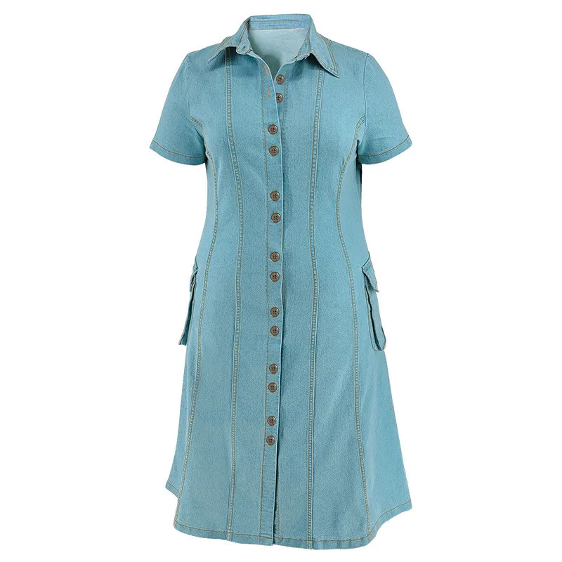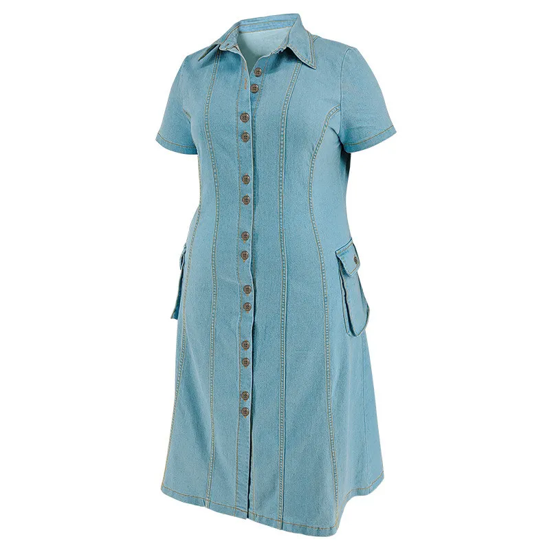 | Product Name | Plus Size Women’s Turndown Collar Short Sleeve Button Fashion Denim Dress |